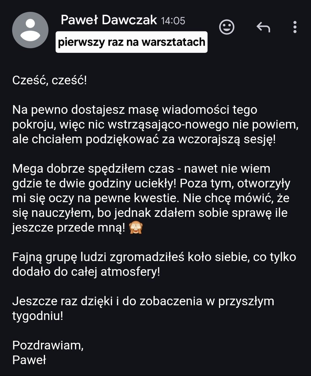 Najważniejsza, skondensowana wiedza wysyłana przed każdym warsztatem online.